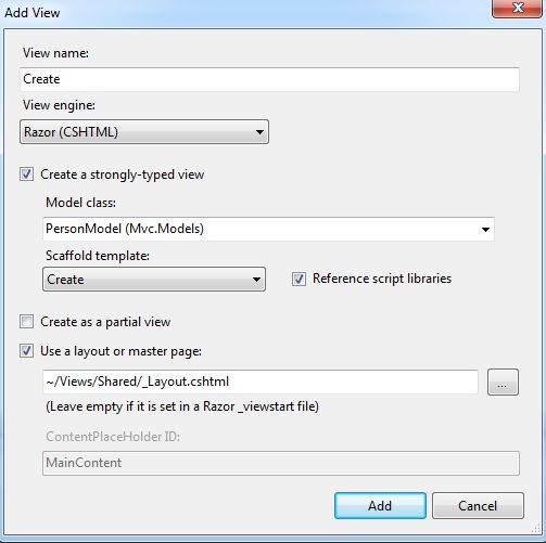 We will create a form which takes data for a Person and posts it back to the Controller.